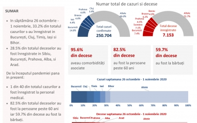 INSP: 28,5% din totalul deceselor din ultima săptămână au fost în Sibiu, Bucureşti, Prahova, Alba și Arad