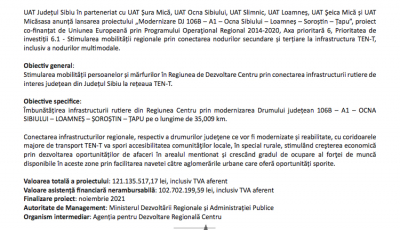Lansarea proiectului MODERNIZARE DJ 106B – A1 – OCNA SIBIULUI – LOAMNEȘ – SOROȘTIN – ȚAPU (CP)