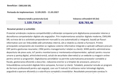 Comunicat lansare proiect: DIGITALIZAREA ACTIVITĂȚII SOCIETĂȚII EMILIAN SRL