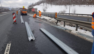 Drumarii lucrează pentru înlocuirea parapetului distrus în accidentul de ieri de pe A1
