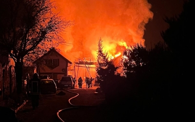 Incendiu la două case de pe strada Stăvilarului. Flăcările au pornit de la un garaj în care se aflau trei autoturisme