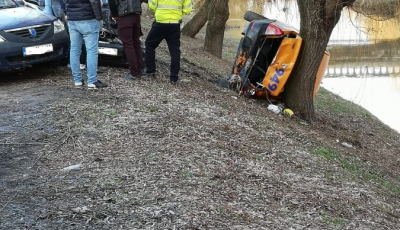 Taxi răsturnat pe strada Râului, din cauza unei șoferițe neatente