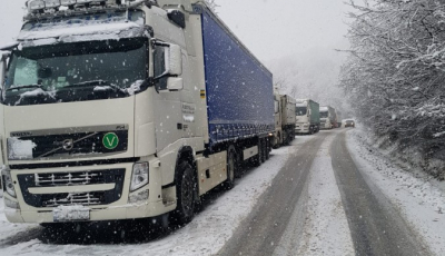 FOTO VIDEO | TIR-uri blocate în rampă, pe DN 14A. Traficul este îngreunat