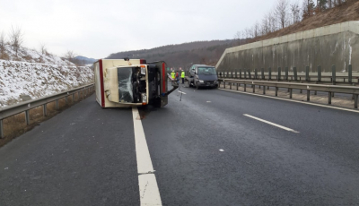 Un șofer și-a pierdut încărcătura de ciment, pe A1. Se circulă pe o singură bandă spre Sibiu