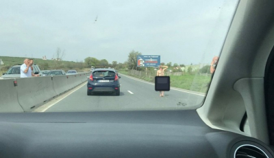 Bărbat gol-pușcă luat de polițiști din mijlocul drumului. Nu știe cine e