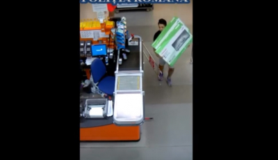 VIDEO. Cum să furi trei televizoare. Ieși cu ele pe ușă