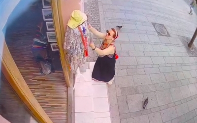 VIDEO – Femeia acuzată de furt pe Bălcescu s-a întors pe ascuns și a lăsat bunurile la ușă