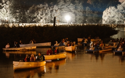 Imagini superbe pe Lacul din Dumbrava: Vizionare din bărci la Astra Film Festival