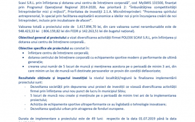 Comunicat de presă - Finalizarea proiectului „Diversificarea activității firmei Polexx Scavi S.R.L. prin înființarea și dotarea unui centru de întreținere corporală”