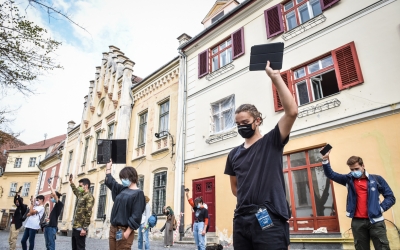 FOTO/Flash mob în centrul Sibiului pentru elevii de la sate: Autoritățile să-și deschidă ochii, să asculte vocile elevilor