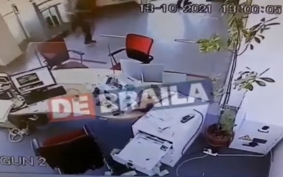 VIDEO Jaf la o bancă din Brăila, un barbat a furat câteva mii de euro după ce a amenințat-o pe casieră