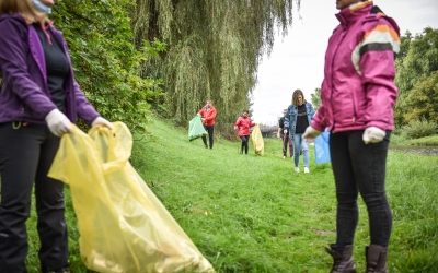 Angajații unei companii din Sibiu au lăsat lucrul pentru a strânge gunoaie pe malul Cibinului