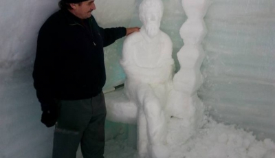 Marile sculpturi ale lui Brâncuși reproduse în gheață. La Bâlea Lac