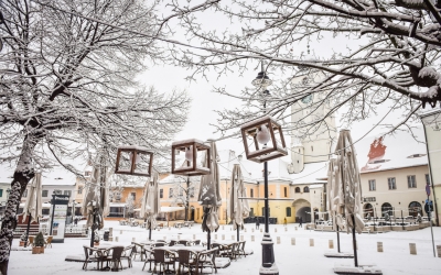 Imagini cu Târgul de Crăciun din Sibiu acoperit de zăpadă. „Ultimul detaliu de care târgul nostru avea nevoie pentru ca atmosfera să fie magică tocmai a fost rezolvat”