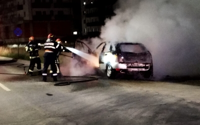 VIDEO Un sibian de 18 ani a condus peste un giratoriu și a ajuns într-o benzinărie unde mașina a luat foc, în Constanța