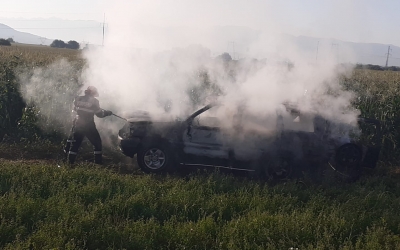 Mașină arsă complet în această dimineață, la marginea Sibiului