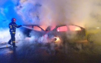 Foto Incendiu într-un parc de dezmembrări auto din Mediaş