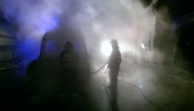 Microbuz în flăcări în Cisnădie. Mașina a ars complet