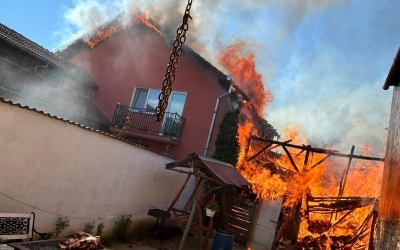 A luat foc o casă din Copșa Mică: un bărbat de 50 de ani a suferit arsuri pe aproximativ 60% din suprafața corpului