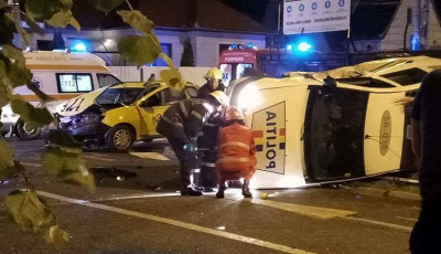 Un polițist a circulat pe interzis, apoi nu a acordat prioritate și s-a lovit în plin de un taxi: patru răniți