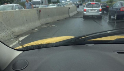 Actualizare. Un TIR a intrat în separatoarele de beton de pe DN 1 și le-a împins până pe banda doi a sensului opus