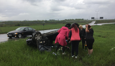 Accident la intrarea în Sibiu, înainte de Aeroport. O mașină s-a răsturnat