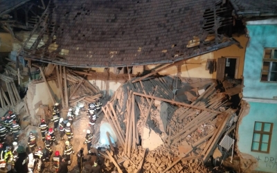 Internat prăbuşit la Odorheiu Secuiesc. Administratorul societăţii care realiza lucrarea, pus sub control judiciar