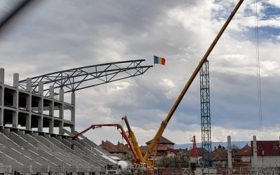 FOTO: Tricolorul, înălțat pe noua tribună a Stadionului Municipal. ”Suntem mândri!”
