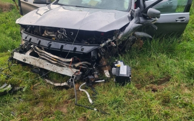 Accident lângă Cârțișoara, din cauza vitezei excesive. Două persoane au fost duse la spital