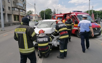Accident pe Coposu, spre noul mall. Un șofer nu a păstrat distanța și a lovit mașina din față