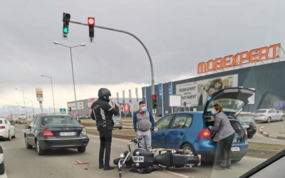 Accident lângă Shopping City. Un motociclist a fost rănit, după ce a lovit o mașină oprită la semafor