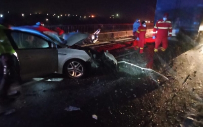 Coliziune între o mașină și o autoutilitară, pe un pod, lângă Avrig. Un bărbat a fost încarcerat