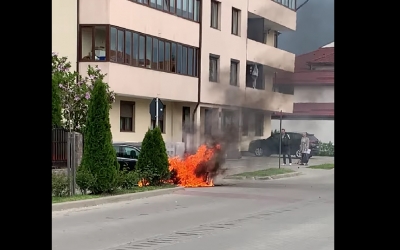 O mașină a luat foc în Șelimbăr din cauza unui scurt circuit la motor
