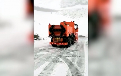 VIDEO Te uită cum ninge în iunie: drumarii sibieni deszăpezesc pe ninsoare