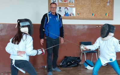 La școala din Agârbiciu, un antrenor german predă voluntar lecții de scrimă: „Nu-i putem face campioni, dar devin copii care se respectă unul pe celălalt”