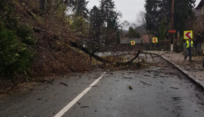 Copac căzut pe drum, la Călimănești. Sunt tăiați și ceilalți în pericol de cădere