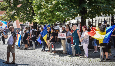 Președintele PSD Sibiu, discuții cu protestatarii din fața sediului: ”Nu știu nici ei ce mai cer”