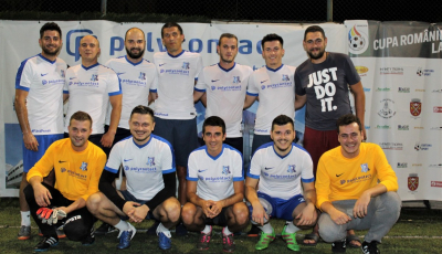 Sloganul #FărăPenali pe tricourile unei echipe de minifotbal din Sibiu