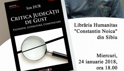 Ion Dur lansează „Critica judecății de gust”, la Humanitas