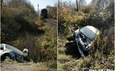O mașină a fost lovită de tren lângă Colun: șoferul, un sibian de 67 de ani, a trecut pe roșu. Acesta a fost transportat la spital