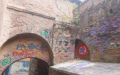 Imagini cu ziduri istorice ce stau să cadă pe o stradă din Sibiu. Primăria: urmează să fie curățate și ulterior reparate