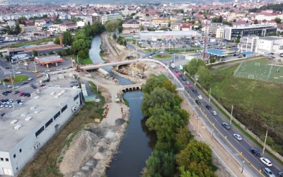 Imagini aeriene: Cum arată șantierul podului nou peste Cibin, la patru luni de la debutul lucrărilor