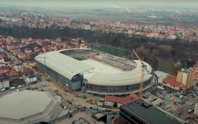 VIDEO Noi imagini de pe șantierul noului stadion al Sibiului. Stadiul lucrărilor la începutul lunii martie