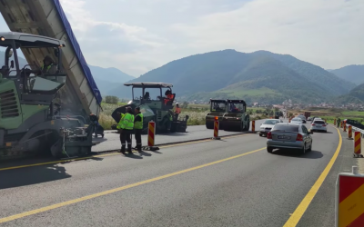 VIDEO Muncitorii aștern stratul de uzură pe zona lărgită la patru benzi, de pe DN7