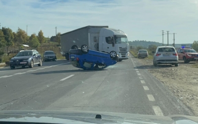 Mașină răsturnată la Cristian, pe DN 1. Din fericire nimeni nu a fost rănit