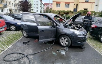O mașină a luat foc în zona Mihai Viteazu, din cauza unui scurtcircuit electric