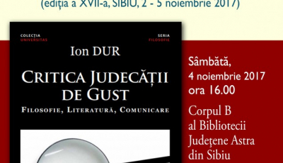 Se lansează „Critica judecății de gust”, noul volum al eseistului Ion Dur