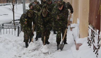 Studenții militari din Sibiu au deszăpezit trotuarele