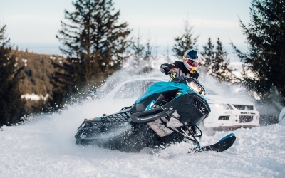 VIDEO - Concurs pe pârtie, la Arena Platoș: Mașină de curse vs. snowmobil