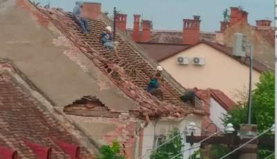 VIDEO A început demolarea casei care a “explodat“ pe str. Crișanei. Muncitorii își riscă viața